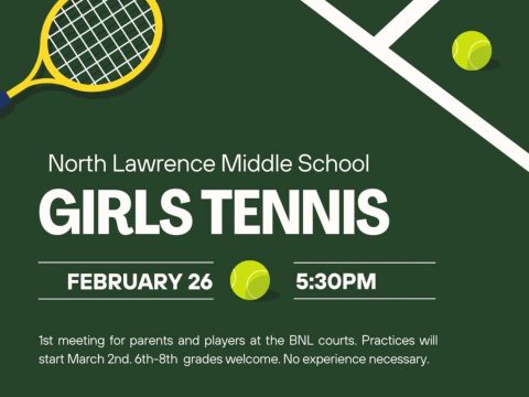 North Lawrence Middle School Girls Tennis Meeting set for February 26