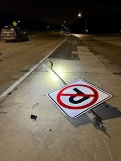 Damage to the light poles, signs, and scale house is estimated at several thousand dollars.