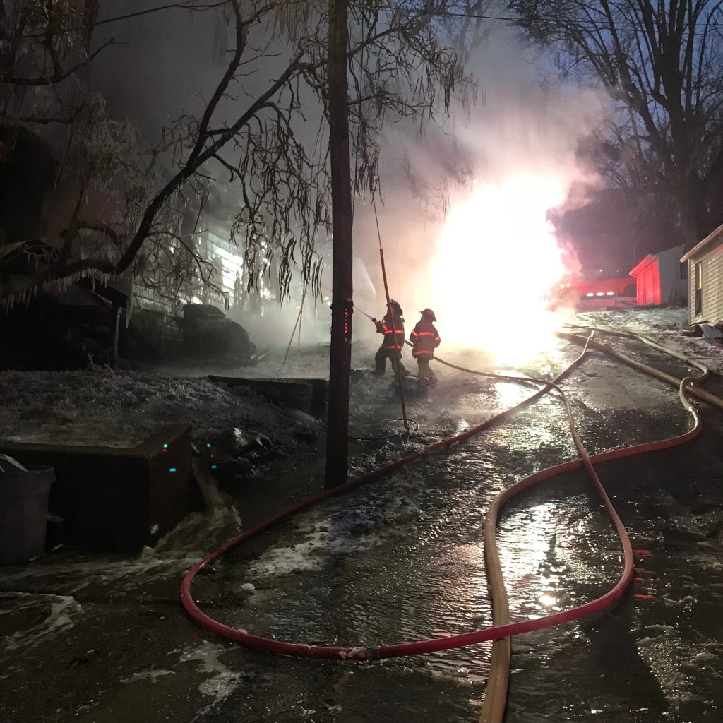 FRENCH LICK – A fire destroyed a French Lick home early Sunday morning as firefighters braved brutal cold temperatures while battling flames.