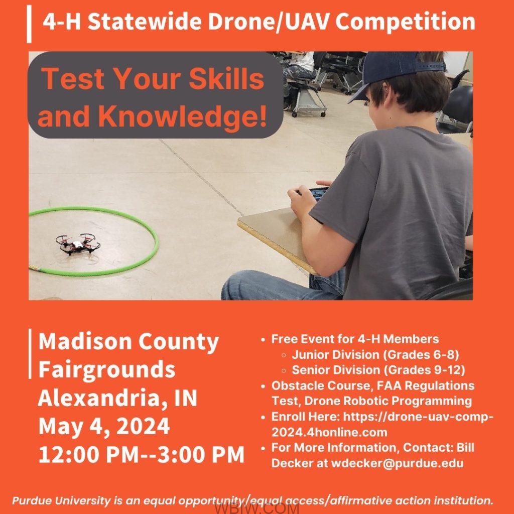INDIANA- Are you in 4-H and have experience flying drones? Test your skills at the 4-H Statewide Drone/UAV Competition in Alexandria. This comprehensive competition consists of 3 challenges that will test piloting skills, programming, and general drone knowledge.