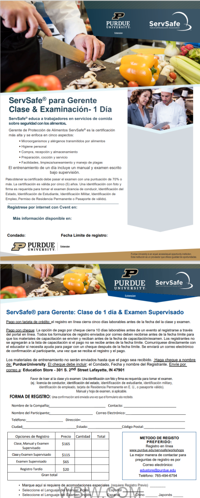 Posted in Local A Spanish ServSafe Class will be held in Daviess County March 4, 2024 DAVIESS CO. – A Spanish ServSafe Class will be held in Daviess County, on Tuesday March 19. Details and the registration link are on the attached flyer.