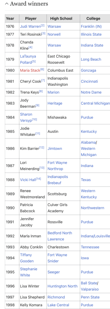 1992 – Marla Inman (Miss Basketball)