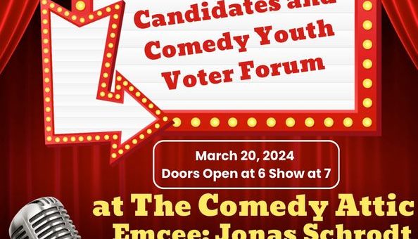 “The opportunity to question candidates for elected office is crucial to a democracy. Voters should understand who and what they vote for,” said Ben Giddens, MCDP Intern. “I believe this an important opportunity for newly registered voters and young people to learn about the issues that affect them. This event will create a good, life-long habit of voting for these younger voters and they will be hearing from great comedians in the area. ” Giddens said.