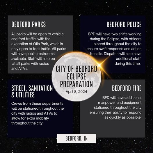 BEDFORD – The City of Bedford has been taking precautionary measures to ensure the safety and efficiency of our community during the Total Solar Eclipse on Monday, April 8.