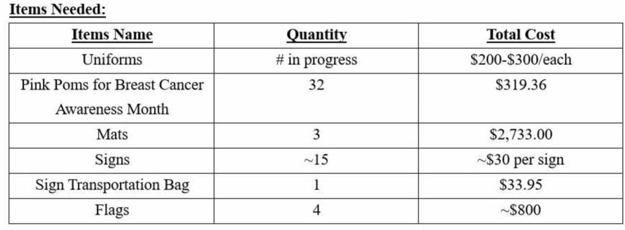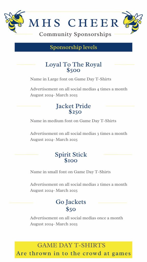 The Varsity Cheerleading Team is also looking for sponsors to help support the growing program.