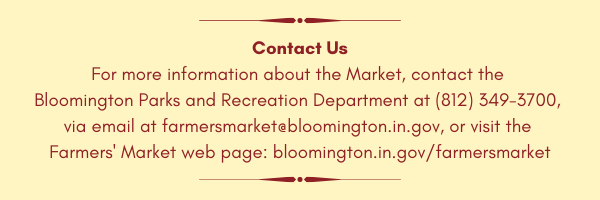 This community outreach program invites Market-goers to engage with the mayor and various department heads from the City of Bloomington government.