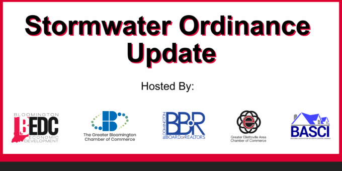BLOOMINGTON- Join Monroe County, the City of Bloomington, and the Town of Ellettsville as they discuss recent local changes in Stormwater Ordinances (Title 13) following a shift in state regulations. These changes will affect properties, buildings, and development across the community. This event aims to help attendees understand the basic changes, how each jurisdiction compares, and where to go for project-specific questions.
