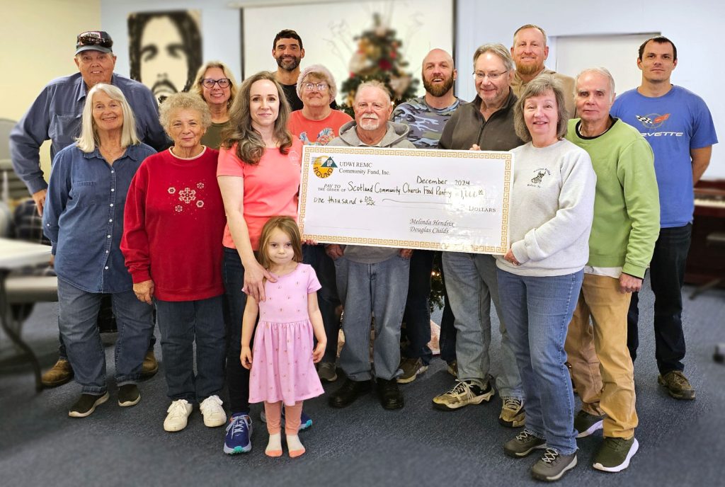 In the last quarter of 2024, the UDWI REMC Community Fund awarded $20,465 to ten organizations, including $1,000 to the Scotland Community Church Food Pantry. The December 2024 grant recipients include Bloomfield Downtown Revitalization, Inc., Linton Stockton Band Department, Lyons Community Food Pantry, Metropolitan School District of Shakamak, Night to Shine, Pregnancy Choices, Scotland Community Church Food Pantry, Town of Bloomfield Swimming Pool, Worthington Community Improvement Committee, and Worthington Lions Club.