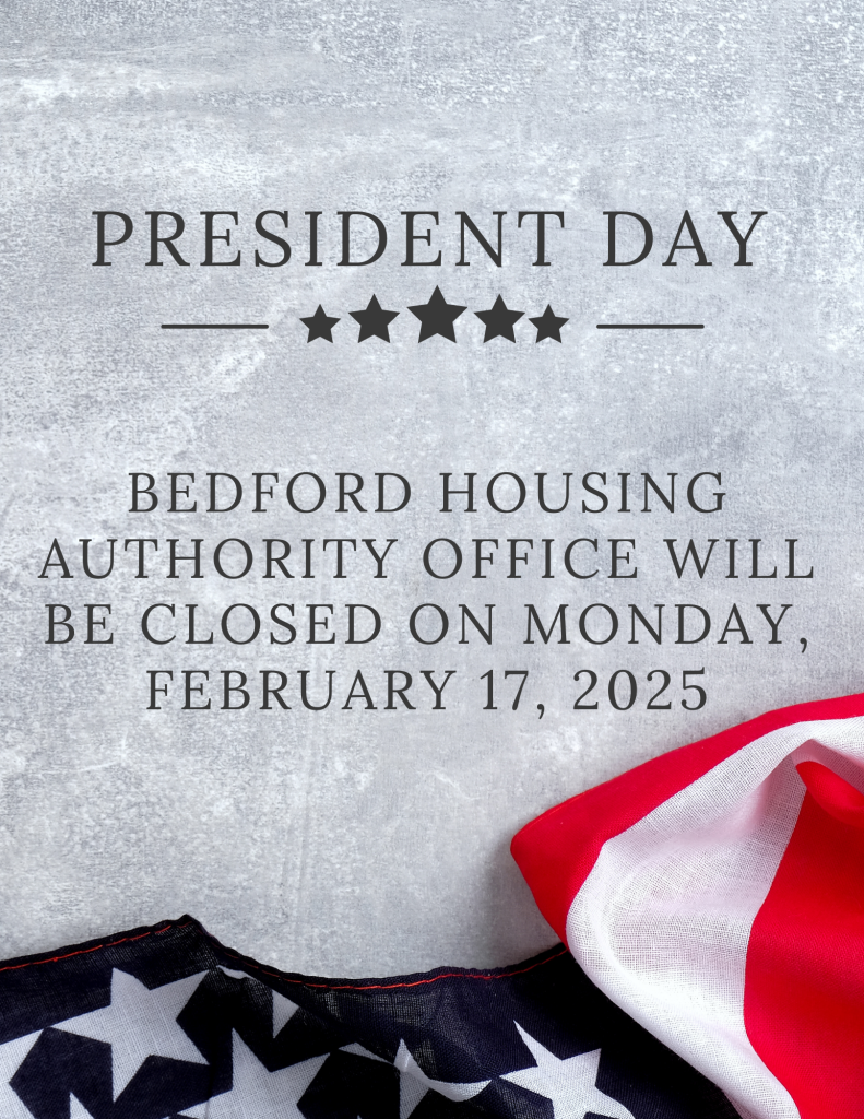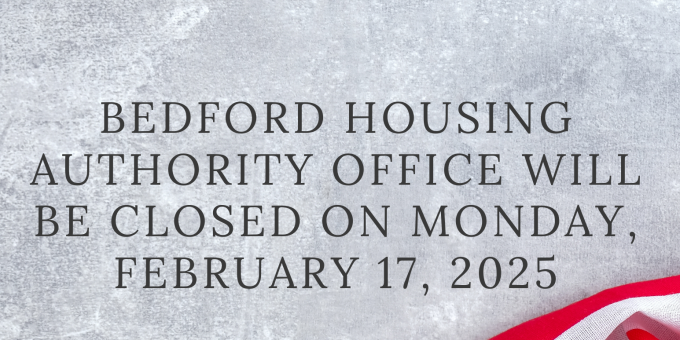 Posted in Local Bedford Housing Authority will be closed Monday February 13, 2025 BEDFORD – The Bedford Housing Authority office will be closed on Monday, February 17. The office will be closed in observance of President’s Day.