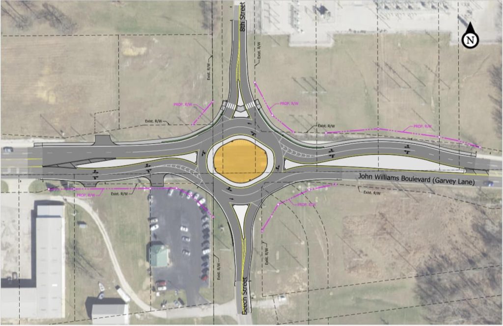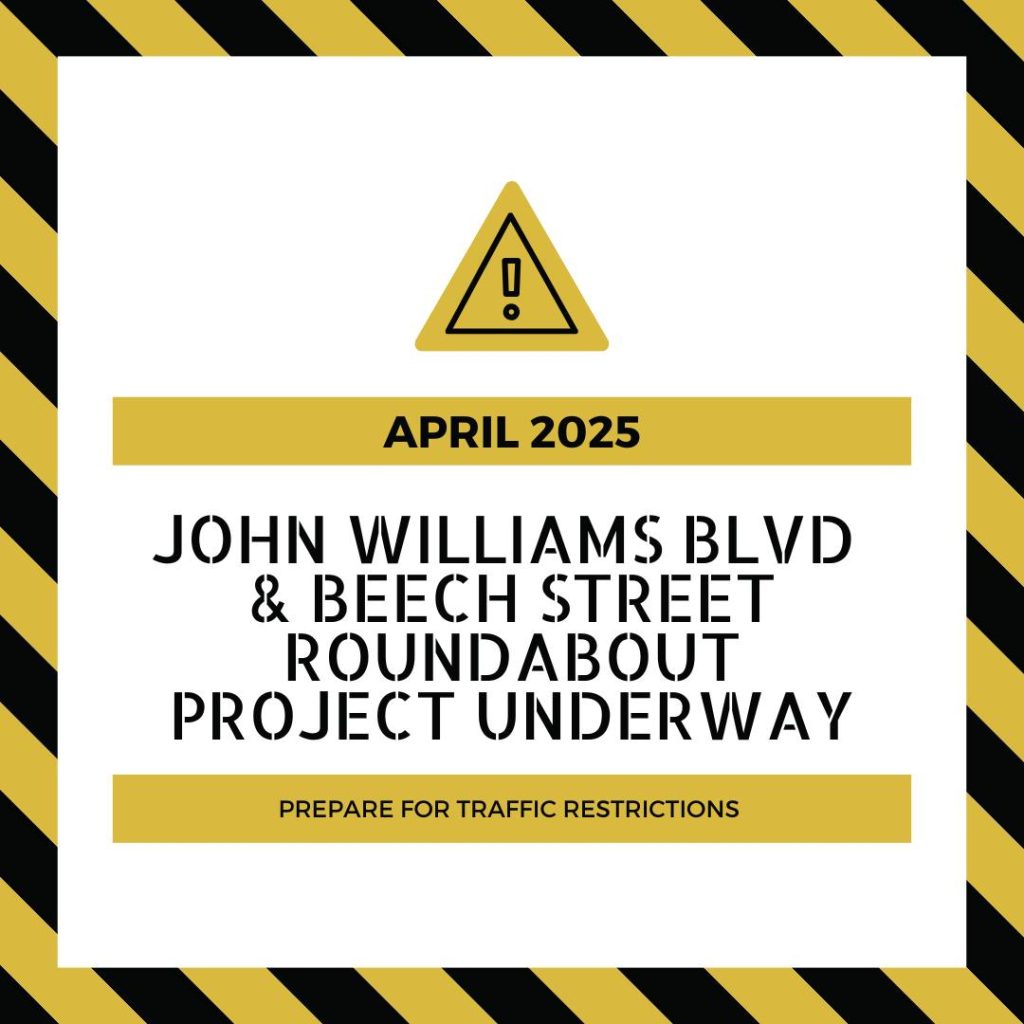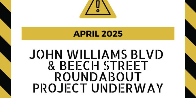 BEDFORD- Construction will begin on or after April 1st on John Williams Boulevard for the installation of a roundabout at the Beech Street intersection. The roundabout will improve traffic flow and safety at the intersection.