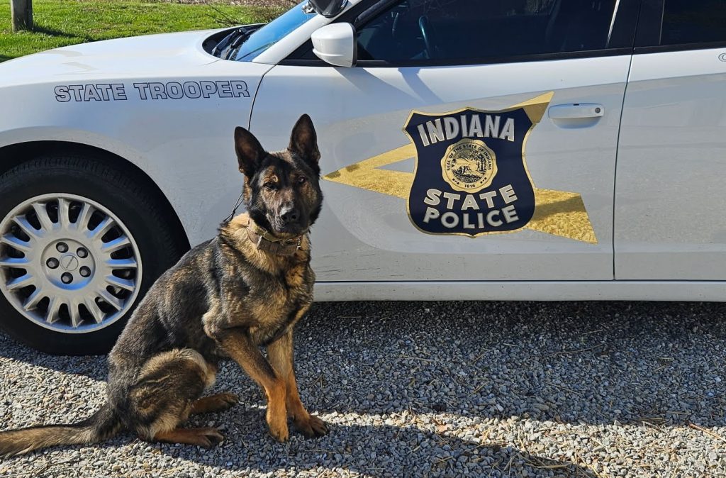 K9 Oswald is a two-and-a-half-year-old German Shepherd assigned to Master Trooper Jason Hankins. Master Trooper Hankins and Oswald have been patrolling the Indiana State Police-Versailles District since January 2024.