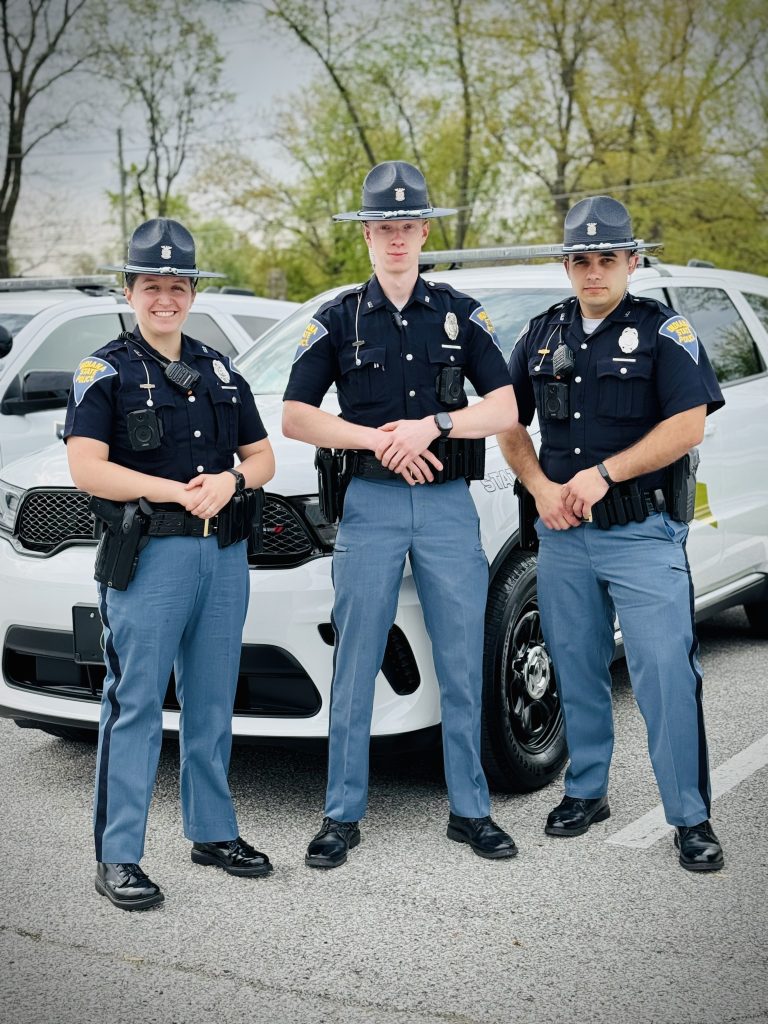 Left to right: Trooper Brianna Santoyo, Trooper Carson Hieber, Trooper Andrew Bixler