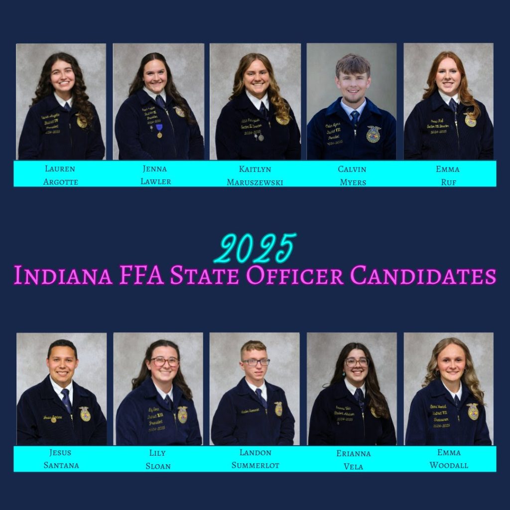 INDIANA – Ten promising individuals are set to compete for seven coveted Indiana FFA state officer positions during the upcoming 96th Indiana State Convention. The selected officers will serve as president, secretary, northern region vice president, southern region vice president, treasurer, reporter, and sentinel for the upcoming academic year.