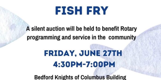 BEDFORD — The Rotary Club of Bedford invites the community to enjoy great food and support meaningful local service projects at its annual Dr. Dan Schafer Memorial Fish Fry, scheduled for Friday, June 27, from 4:30 p.m. to 7:00 p.m. at the Bedford Knights of Columbus, located at 2202 M Street.