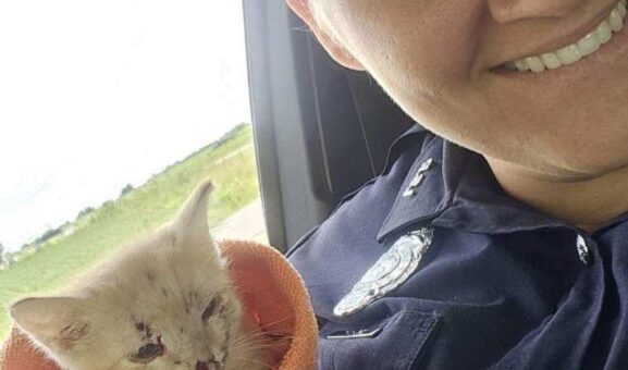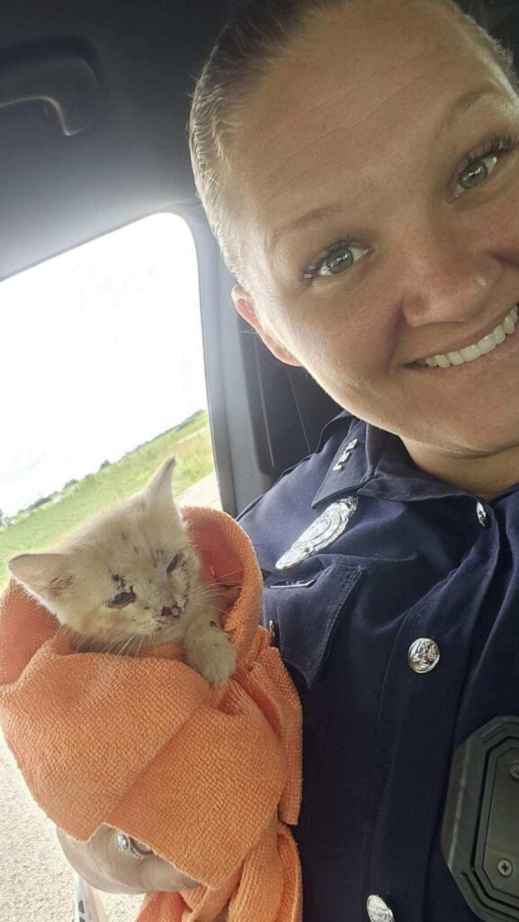 According to the Indiana State Police (ISP) Versailles Post, Trooper Tia Hunt was on patrol Friday when she observed a UPS delivery driver stopped along the side of the road. The driver informed Trooper Hunt that he had witnessed a kitten being thrown from a vehicle window and felt compelled to stop and check on the animal.