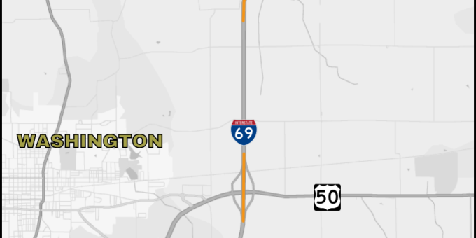 Beginning on or around Monday, June 30, crews will start alternating lane closures on I-69 near Washington. These lane closures will occur in two sections. The first section will occur over the bridge at the interchange of U.S. 50 and I-69. The second section will occur from mile marker 64 to mile marker 66.