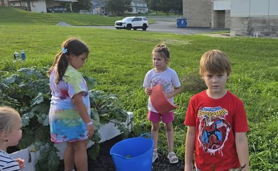 BEDFORD– It was a bustling and bountiful day at Lincoln Elementary School, where Lincoln Green Thumbs members were busy harvesting a vibrant array of summer produce. Despite the hard work, spirits were high, and everyone left with armfuls of fresh vegetables and a good soaking.