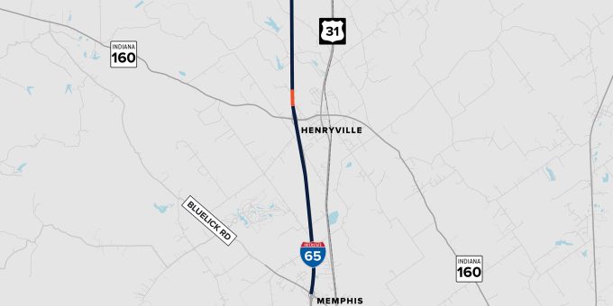 On or after Monday, September 15, shoulder strengthening work will begin on northbound and southbound I-65 between MM 16, located just south of Henryville (Exit 19), and MM 24.5, located just north of Henryville (Exit 19). Drivers can expect shoulder closures and nighttime lane closures on northbound and southbound I-65 while work is in progress. These closures are anticipated to last until late October, weather permitting.