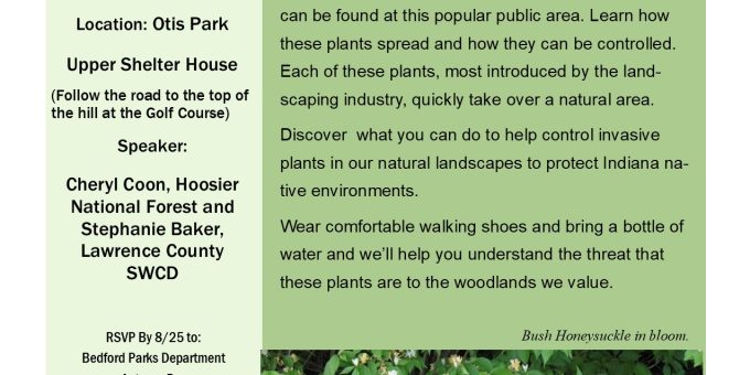 - Speakers: Cheryl Coon of the Hoosier National Forest and Stephanie Baker of the Lawrence County SWCD will lead the discussion.