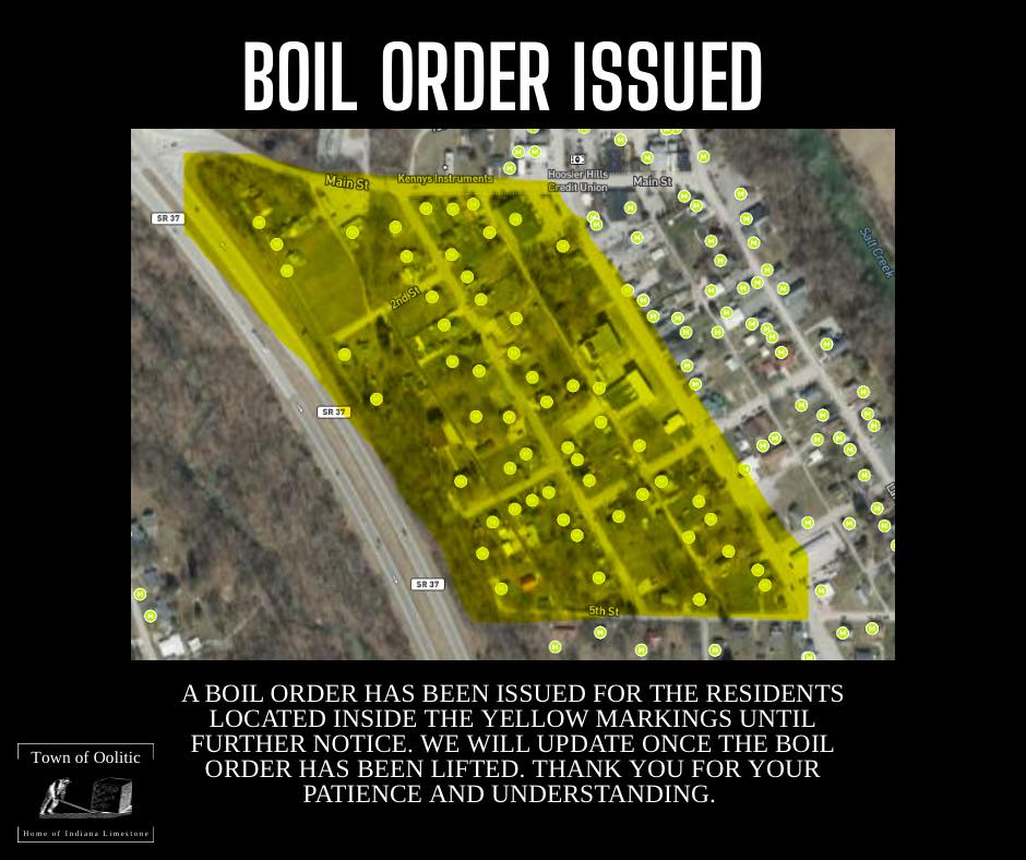 OOLITIC— The Town of Oolitic has issued a boil order for a portion of its residents, effective immediately and until further notice.