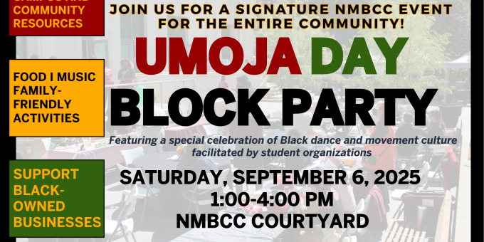 The celebration will take place from 1:00 p.m. to 4:00 p.m. in the NMBCC Courtyard. All members of the community, including students, campus partners, and Black business owners, are invited to attend.