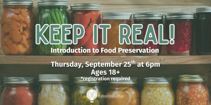 BEDFORD — The Bedford Public Library will offer a hands-on introduction to food preservation later this month as part of its “Keep It Real!” program series.