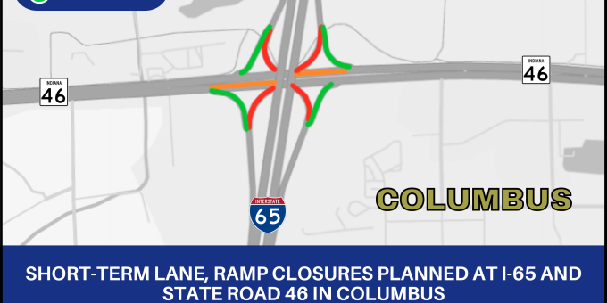 BARTHOLOMEW CO. – The Indiana Department of Transportation announces short-term lane and ramp closures at the I-65 and State Road 46 interchange (Exit 68) for routine bridge inspection work in Columbus.