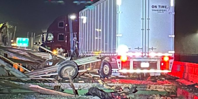 According to the Indiana State Police, a 2020 Volvo semi-truck towing a trailer ran off the road and crashed into a closed lane at approximately 1:58 a.m. today. The driver was not injured in the incident.