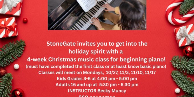 BEDFORD – The StoneGate Arts & Education Center is offering a special four-week class to help the community get into the holiday spirit by learning to play Christmas music on the piano.