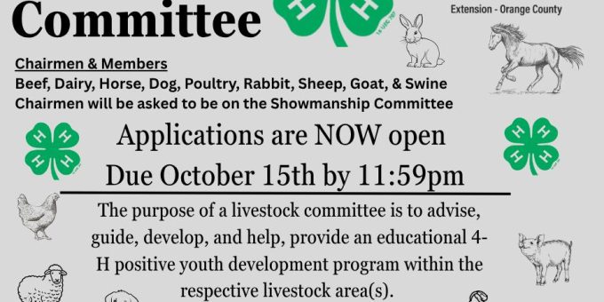 PAOLI — The Orange County 4-H program is now accepting applications for its Livestock Committee, with submissions due by October 15 at 11:59 p.m.