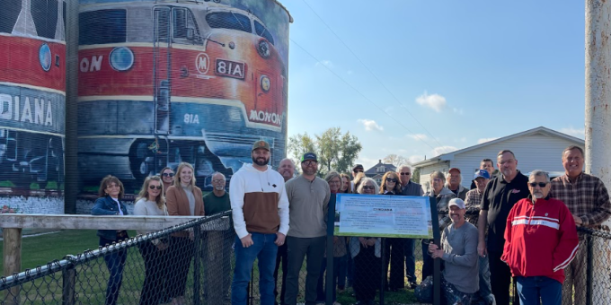 The mural now stands as a welcoming landmark, reflecting both the area’s agricultural and industrial roots. Its location is strategically connected to the Monon South Trail, allowing trail users to easily walk to the viewing spot. The newly unveiled plaque at the site lists all the generous donors and supporters who helped fund the community-driven project.