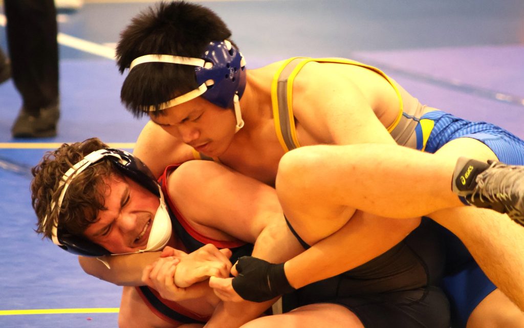 For the Bluejackets, Will Dobson went the distance, scoring late takedown points for a thrilling 14-8 win over Mason Heinzman at 144. Roger Ye, one of the Bluejackets who competed in a weight classes above their scale measurement, stopped Elias Ury in 1:59 at 190.