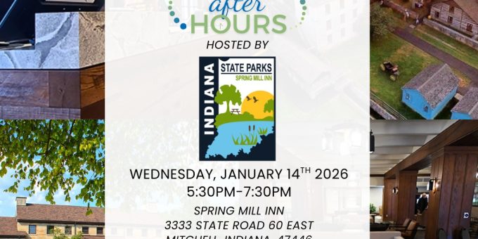 The networking event will take place from 5:30 to 7:30 p.m. at the inn, located at 3333 State Road 60 East in Mitchell. Hosted in partnership with Indiana State Parks, the evening offers attendees the opportunity to build relationships, exchange ideas, and expand their professional networks in a relaxed, welcoming setting.