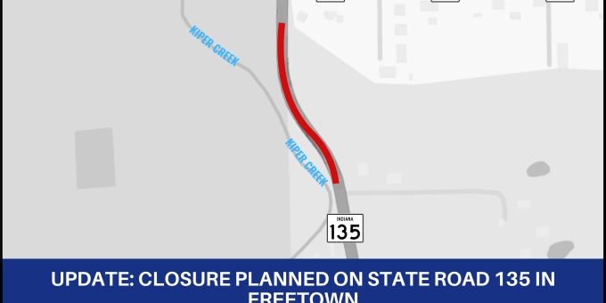 FREETOWN – Indiana Department of Transportation contractor Geostabilization International (GSI) is scheduled to close State Road 135 just south of State Road 58 on or after Tuesday, January 20, to perform slide correction work in Freetown.