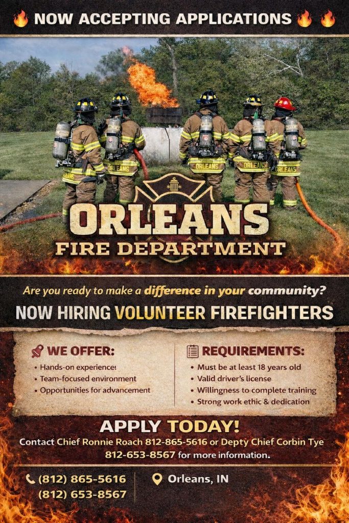 Those interested can contact Chief Ronnie Roach at (812) 865-5616 or Deputy Chief Corbin Tye at (812) 653-8567 for more information.