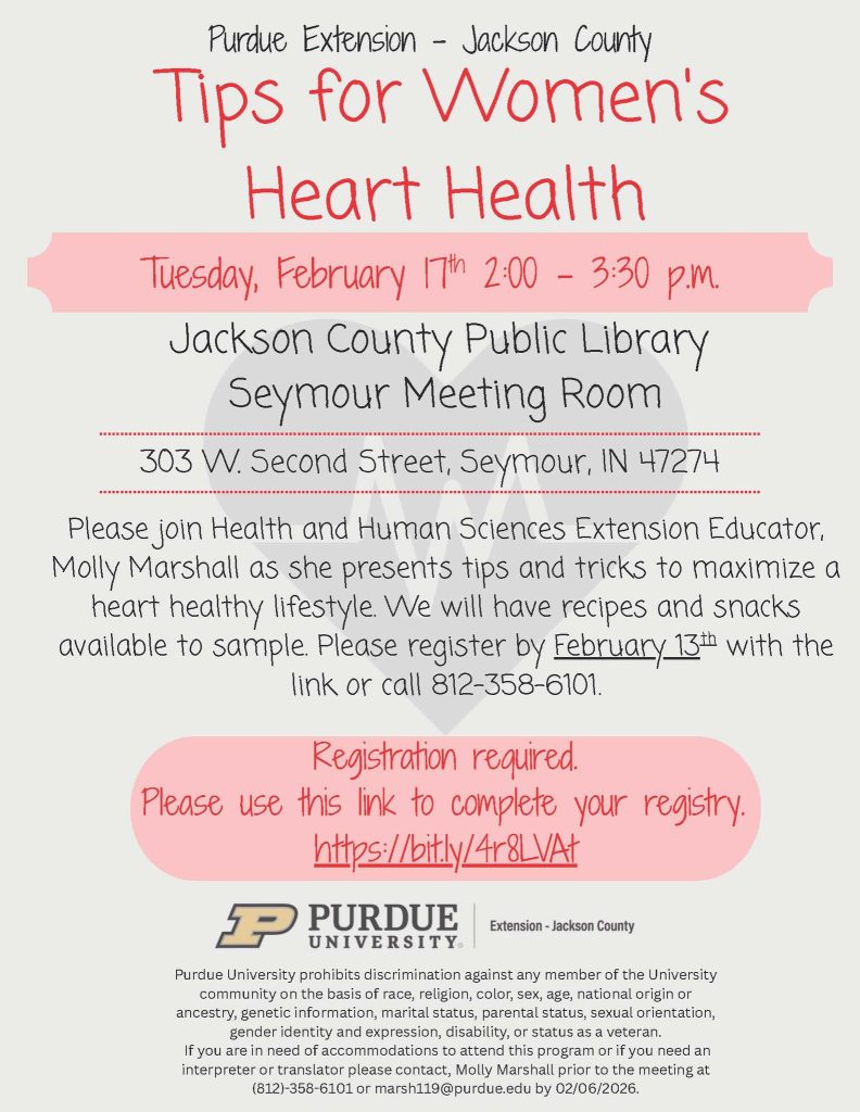 SEYMOUR — February is American Heart Month, and Purdue Extension of Jackson County is inviting the public to a program focused on women’s heart health later this month.