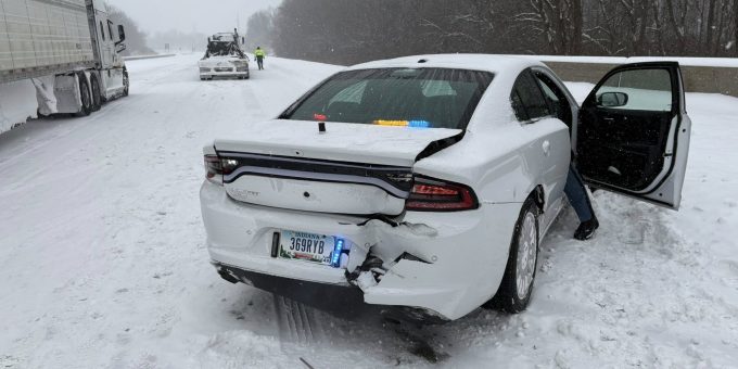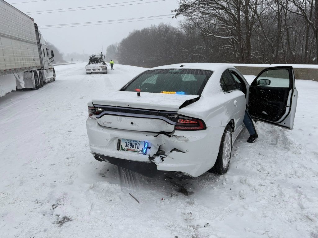 The incident occurred on Interstate 70 near Plainfield. According to ISP Sergeant John Perrine, the trooper had positioned his cruiser behind a vehicle that had become stuck in the deep snow and was sitting perpendicular to traffic.