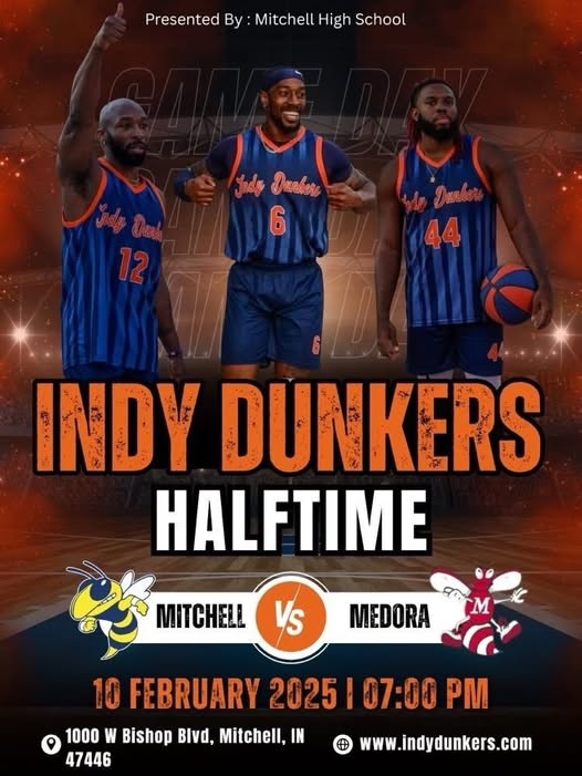 MITCHELL — The Indy Dunkers will be featured as the halftime entertainment during the boys basketball game between Mitchell High School and Medora High School tonight, Feb. 10.