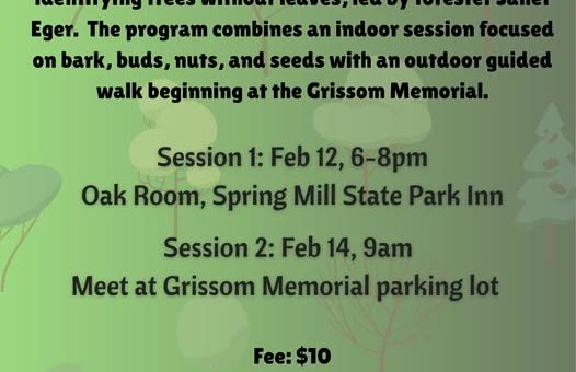 MITCHELL — A two-part winter tree identification workshop will be held at Spring Mill State Park in February, offering hands-on training in identifying trees without leaves.