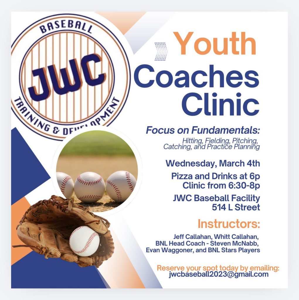 The clinic will be held at the JWC Baseball Facility, located at 514 L St.