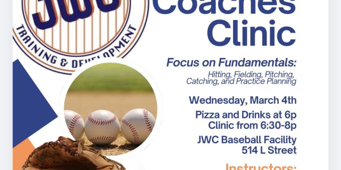 The clinic will be held at the JWC Baseball Facility, located at 514 L St.