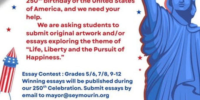 The winners of the competition will see their work integrated into the city’s official “America 250” festivities. Winning essays will be published as part of the local anniversary celebrations, while the top pieces of artwork will be displayed in the halls of Seymour City Hall, allowing residents and visitors to view the students’ patriotic visions.