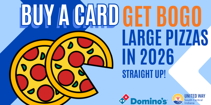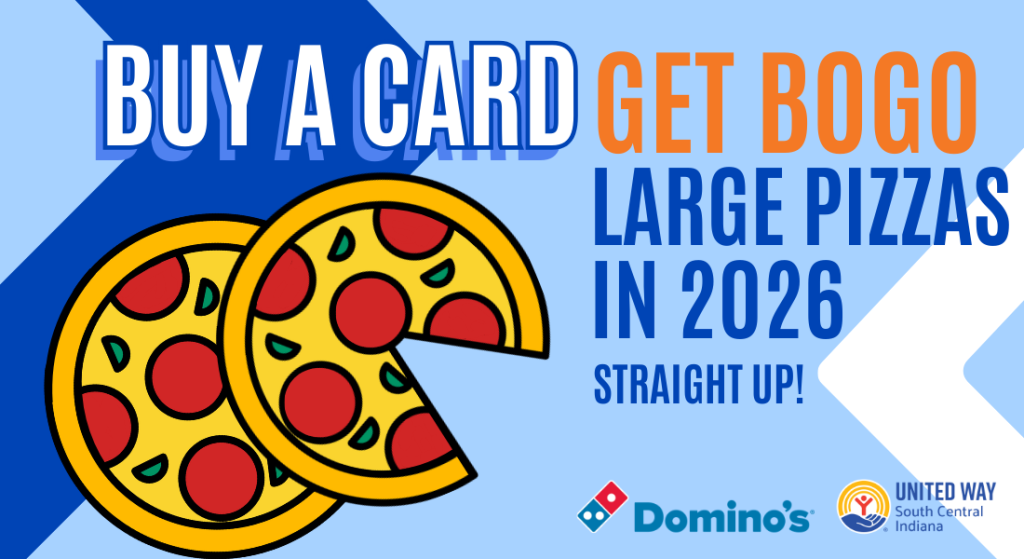 Now through March 6th, purchase a $20 “Slice the Price” card and receive unlimited BOGO pizzas for all of 2026. $10 from each sale directly supports United Way South Central Indiana’s initiatives.