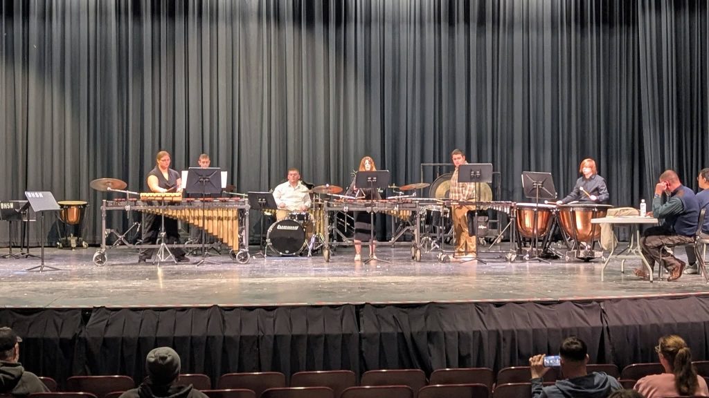 The streak of success began on February 7, when a large contingent of Mitchell students traveled to Bloomington High School North for the District Solo and Ensemble event. Performing for a panel of expert judges, the students were evaluated on technical skill and musicality.