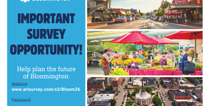 Past Community Survey results are available at bloomington.in.gov/communitysurvey. The full 2026 report will be released following completion of data collection and presented at a public meeting, with details forthcoming.