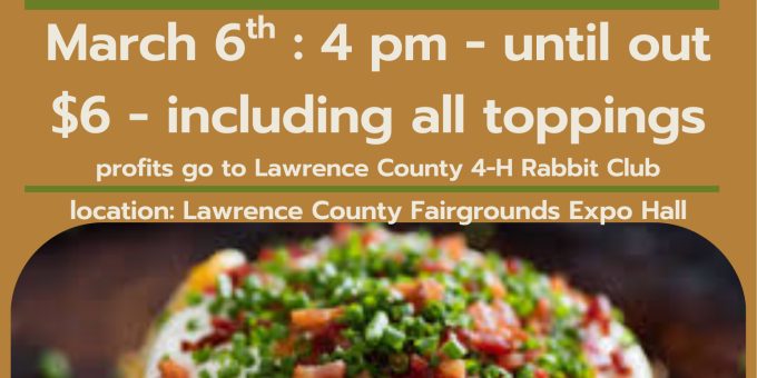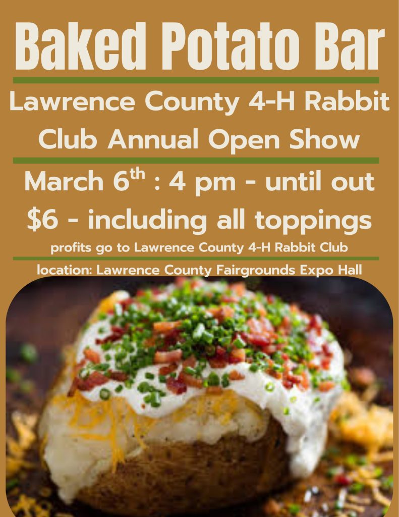In conjunction with the competitive show, the club is inviting the community to its 2nd Annual Loaded Baked Potato Bar and “Buy Now” auction. The fundraiser will take place at the Lawrence County Expo on Friday, March 6, starting at 4:00 p.m. and continuing until food runs out.