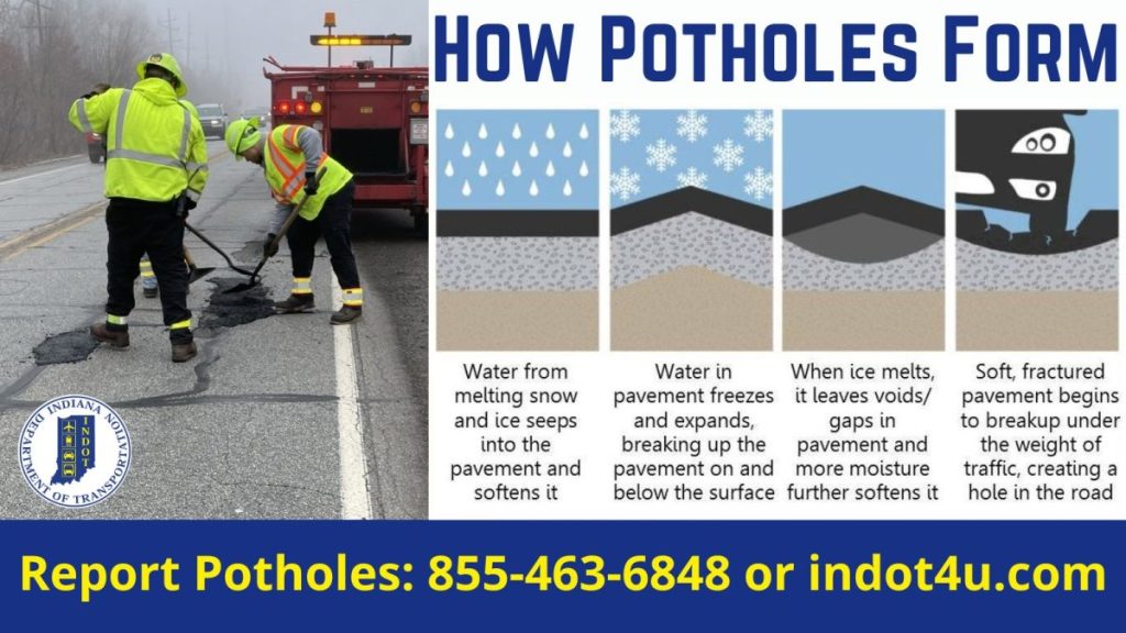Most local agencies have their own dedicated reporting lines or online portals similar to INDOT’s system to help crews prioritize repairs during the busy spring surge.