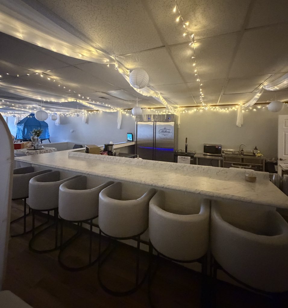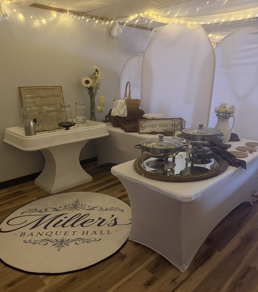 The event highlights the offerings of Miller’s Banquet Hall, a new business in Bedford that provides a flexible venue for a wide range of gatherings. The facility includes seating and service capacity for up to 120 people, multiple televisions, and approximately 1,800 square feet of event space in addition to dedicated play areas for children, babies, and teens. Amenities include industrial refrigerators, serving stations for hot and cold food, a kegerator, and a teen center equipped with charging stations, gaming systems, and lounge space.