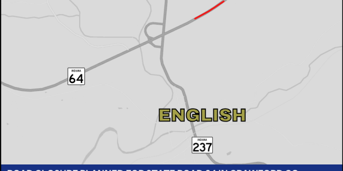 Beginning on or around Tuesday, April 7, crews will close State Road 64 near English. This closure will occur near the intersection of S.R. 64 and State Road 237.