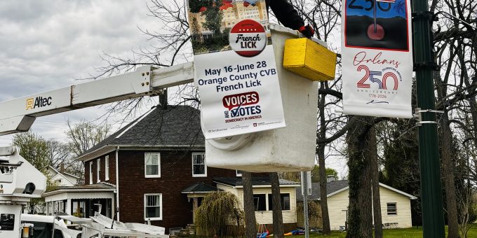In addition to festival promotion, several of the new street banners are directing visitors toward a major cultural event arriving in Orange County next month. Orleans is helping to build anticipation for the Smithsonian Institution’s traveling exhibit, “Voices & Votes: Democracy in America.”